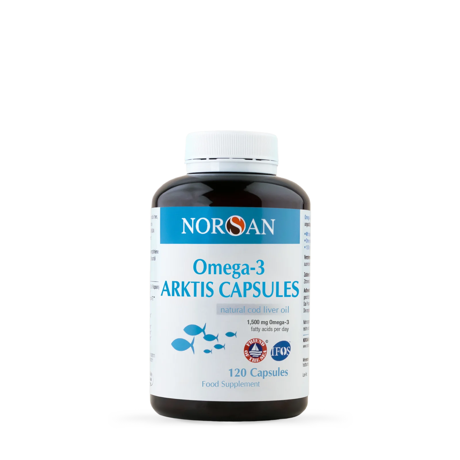In order to guarantee the high requirements in terms of quality and properties of our NORSAN fish oil, we pay attention to high standards when catching the fish, which are checked and certified by independent organizations such as IFOS (5 star rating) and Friend of the Sea. The oil stems from wild-catch of small fish such as mackerel, anchovies and sardines.